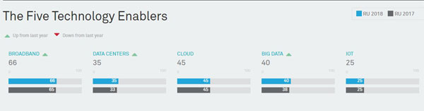 Россия занимает 36-е место в «Глобальном индексе сетевого взаимодействия». Годом ранее она занимала 34 место. Среди прорывных технологий в индексе выделяются широкополосный доступ в интернет, ЦОДы, облака, Big Data и IoT. Аналитики указывают уровень их принятия и распространения, так вот в России год к году показатели по этим технологиям почти не изменились: на 1 пункт вырос широкополосный доступ в интернет, на два – дата-центры и большие данные. Однако эксперты все-таки называют и Интернет вещей в качестве потенциально перспективного для России. Кроме того, в России существует относительно строгое законодательство, касающееся информационной безопасности, и многие организации, особенно корпорации и органы государственного сектора, должны соответствовать конкретным требованиям. Это является сильным сдерживающим фактором. «Глобальный индекс сетевого взаимодействия», 2018, Huawei Россия выступила с планами по развертыванию сетей 5G. Она планирует проводить сетевые испытания и разрабатывать технические требования для нового телекоммуникационного стандарта. Это, надеются аналитики, приведет к запуску тестовых решений и разработке сценариев занятости 5G в будущем. Национальная технологическая инициатива России (НТИ) направлена на выявление проблем, которые предстоит решить стране в ближайшие 10-15 лет на основе долгосрочных прогнозов, в то же время должна найти системные решения для определения ключевых областей научно-технического развития. Инициатива заключается в обеспечении технологического паритета между Россией и ведущими странами мира в области ИКТ, что жизненно важно для сохранения конкурентоспособности на рынке. Необходимо комплексное решение ряда проблем, таких как обеспечение технологической независимости и реиндустриализация экономики путем перевода последних научных достижений в принципиально новые продукты или услуги. В долгосрочной перспективе произойдет переход к новой технологической парадигме, и особенно важно отличить ключевые рынки, которые, как ожидается, появятся в ближайшие 20 лет. «Глобальный индекс сетевого взаимодействия», 2018, Huawei Если говорить про 40 ключевых индикаторов сетевого взаимодействия, которые аналитики делят на 4 большие категории, то в сегменте Supply (поставки) к сильным относят ИКТ-законодательство и проникновение ШПД в домохозяйства. К слабым – инвестиции в Интернет вещей и облака. В сегменте Demand (спрос) сильным названы проникновение мобильного ШПД и компьютеризация домохозяйств, а слабыми – проникновение IoT-устройств и распространение электронной коммерции. Согласно отчету, стоимость глобальной цифровой экономики по итогам 2017 года составила $12,9 млрд, т.е. 17,1% глобального ВВП, а к 2025 году она может увеличиться до $23 млрд. Однако в исследовании подчеркивается, что этому росту угрожает нехватка специалистов по искусственному интеллекту, которая сегодня наблюдается во всем мире. Автор: Алена Журавлева (info@mskit.ru) Рубрики: Интернет, Регулирование